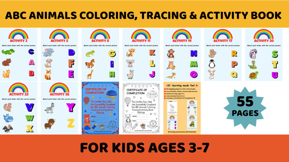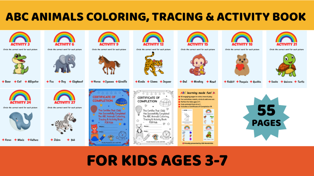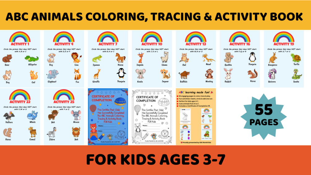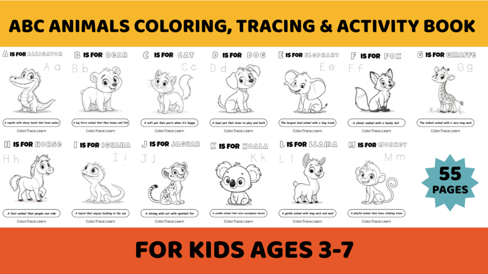 Fun and educational ABC Animals Coloring & Activity Book for kids ages 3–7!
